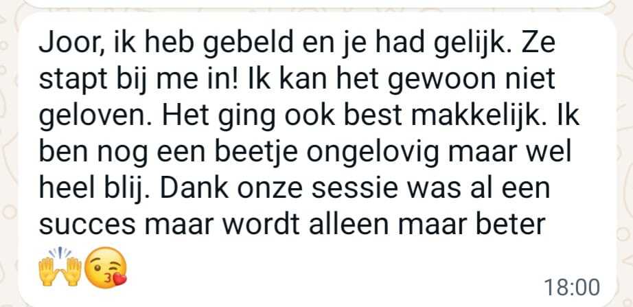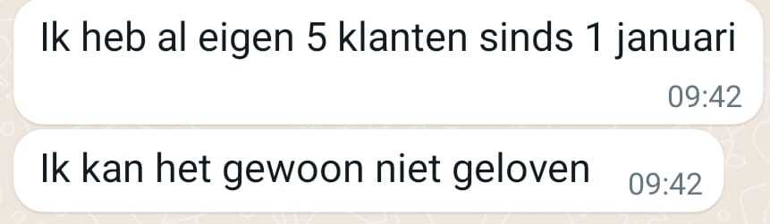 Ik heb geleerd om aan de juiste knoppen te draaien om tot nieuwe klanten te komen. Jori heeft enorm veel ervaring, veel ideeën en is super enthousiast. Dat stimuleerde enorm. Bovendien was het heel gezellig en persoonlijk. Ik ben heel blij dat ik dit traject heb gevolgd.